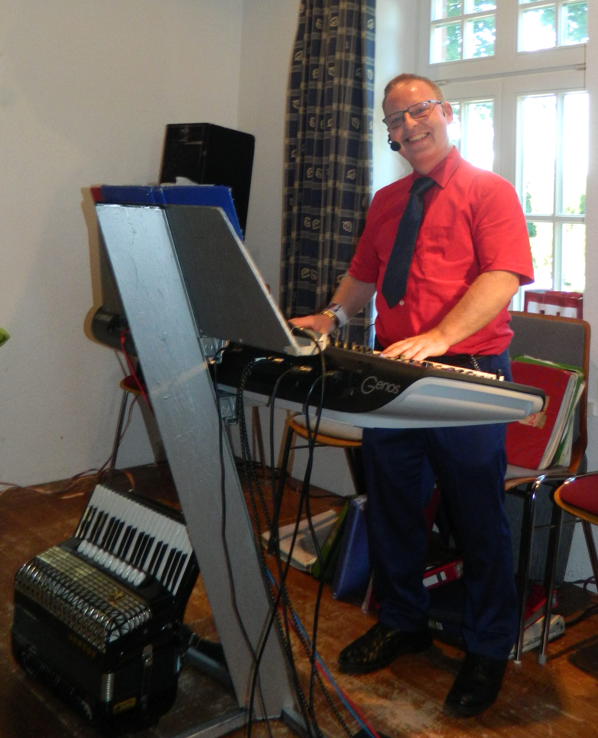 Ich bin ein Entertainer und Musiker der Keyboard und Akkordeon spielt, Ihre Feier moderiert und natürlich auch singt.
